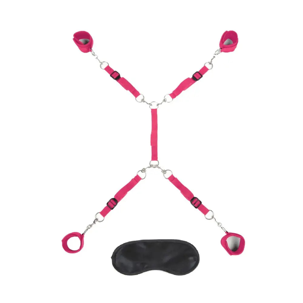 Acest sistem de distribuitor de pat este conceput pentru a vă oferi posibilități interminabile de reținere și plăcere. Dispune de patru manșete reglabile de neopren și patru curele lungi, permițându -vă să vă asigurați partenerul într -o varietate de poziții. Manșetele sunt atașate la curele cu clipuri robuste robuste, asigurând o potrivire sigură și confortabilă. Fiecare curea se conectează la o bandă de atașare a punctului mediu care alunecă discret sub patul tău, ceea ce o face compatibilă cu paturi de toate dimensiunile.